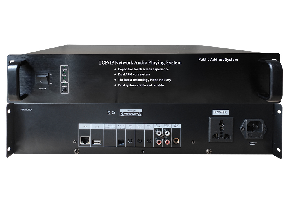 9)具有2级优先功能,网络音频,话筒优先级最高,,再次为本地AUX输入,方便快捷的音频切换;