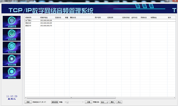 18)终端在线状态,终端播放状态,定时任务状态列表显示明显;