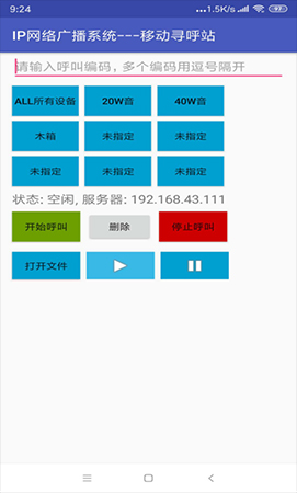 1)通过移动APP对IP终端进行呼叫,对分区进行呼叫;